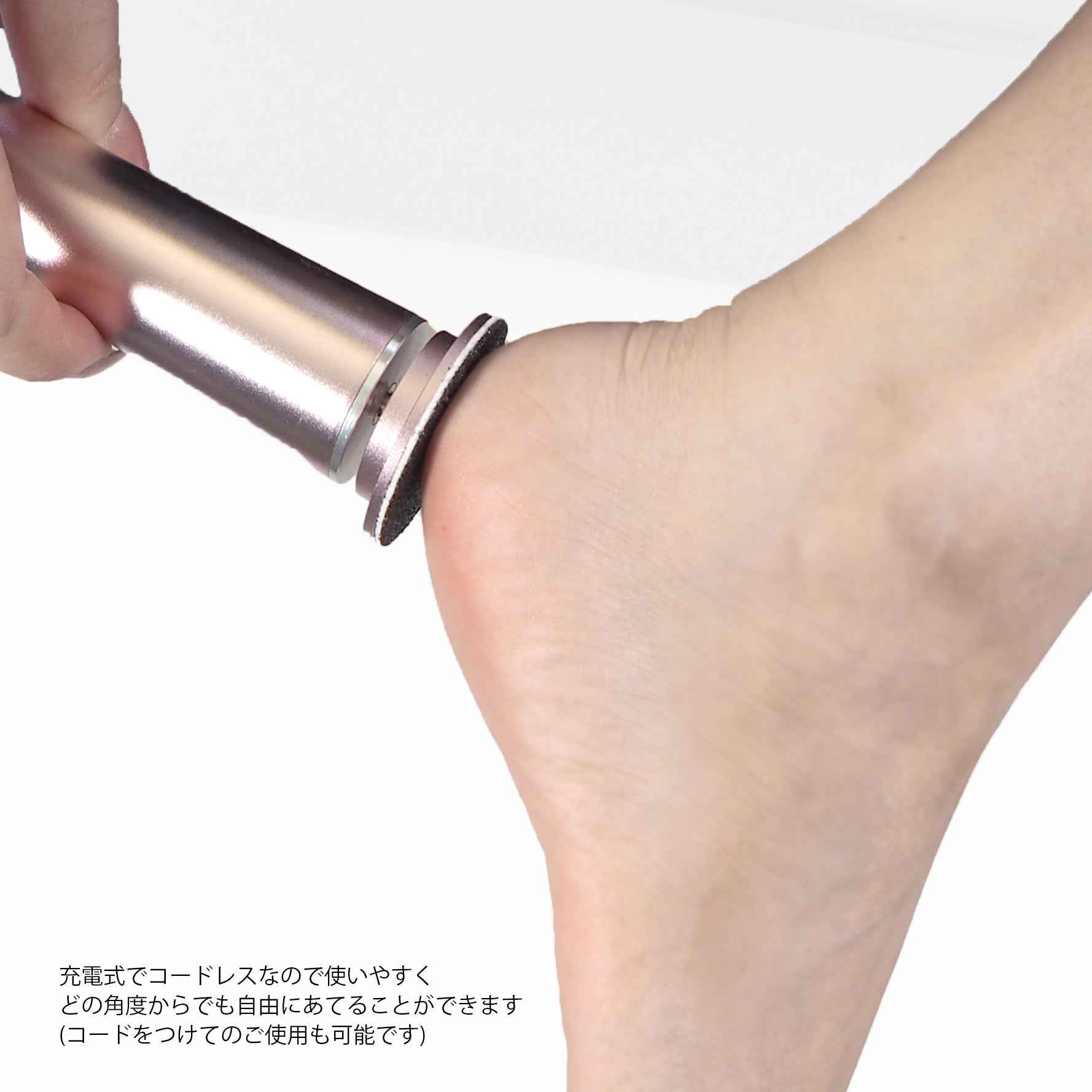 気になるかかとの角質を360度回転でなめらかにオフする電動フットケアマシンです。