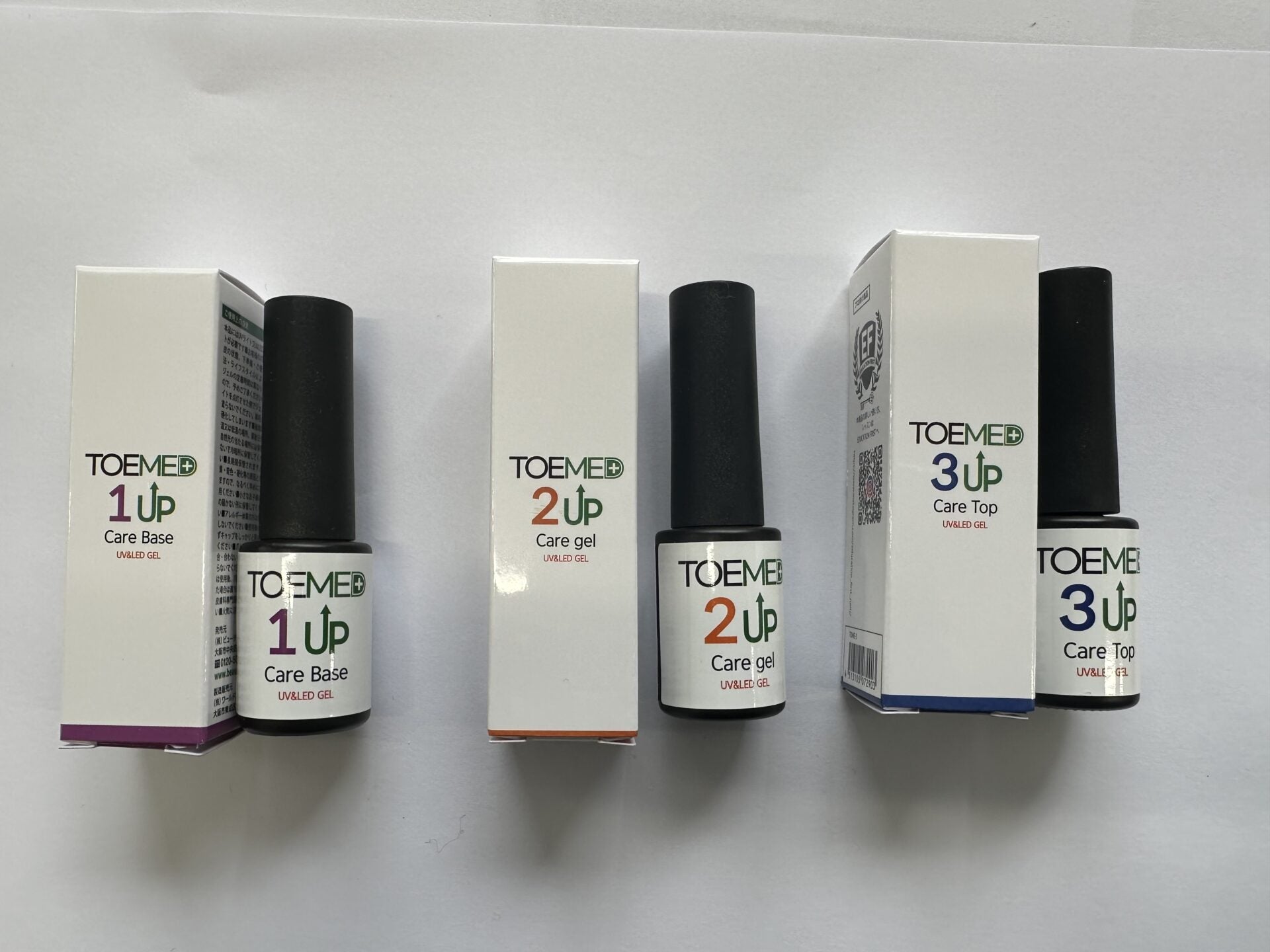 <こちらはTOEMEDシリーズのケアベース、ケアジェル、ケアトップのセットです。