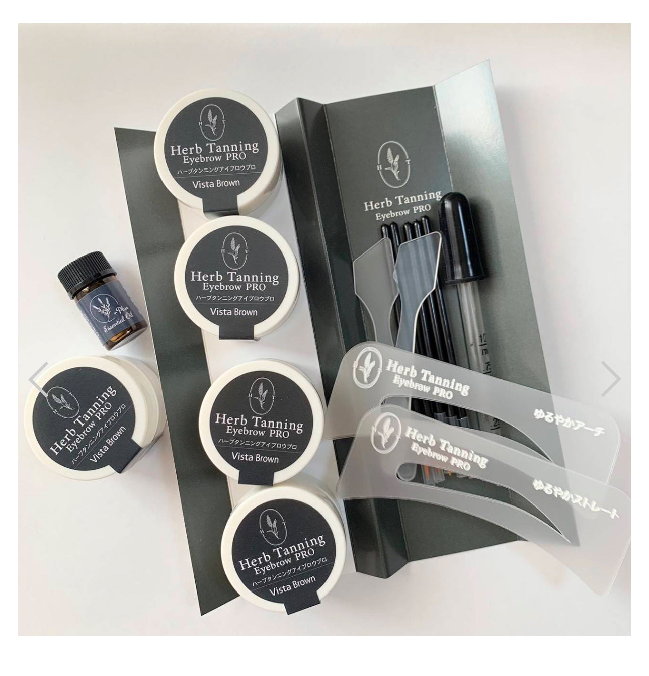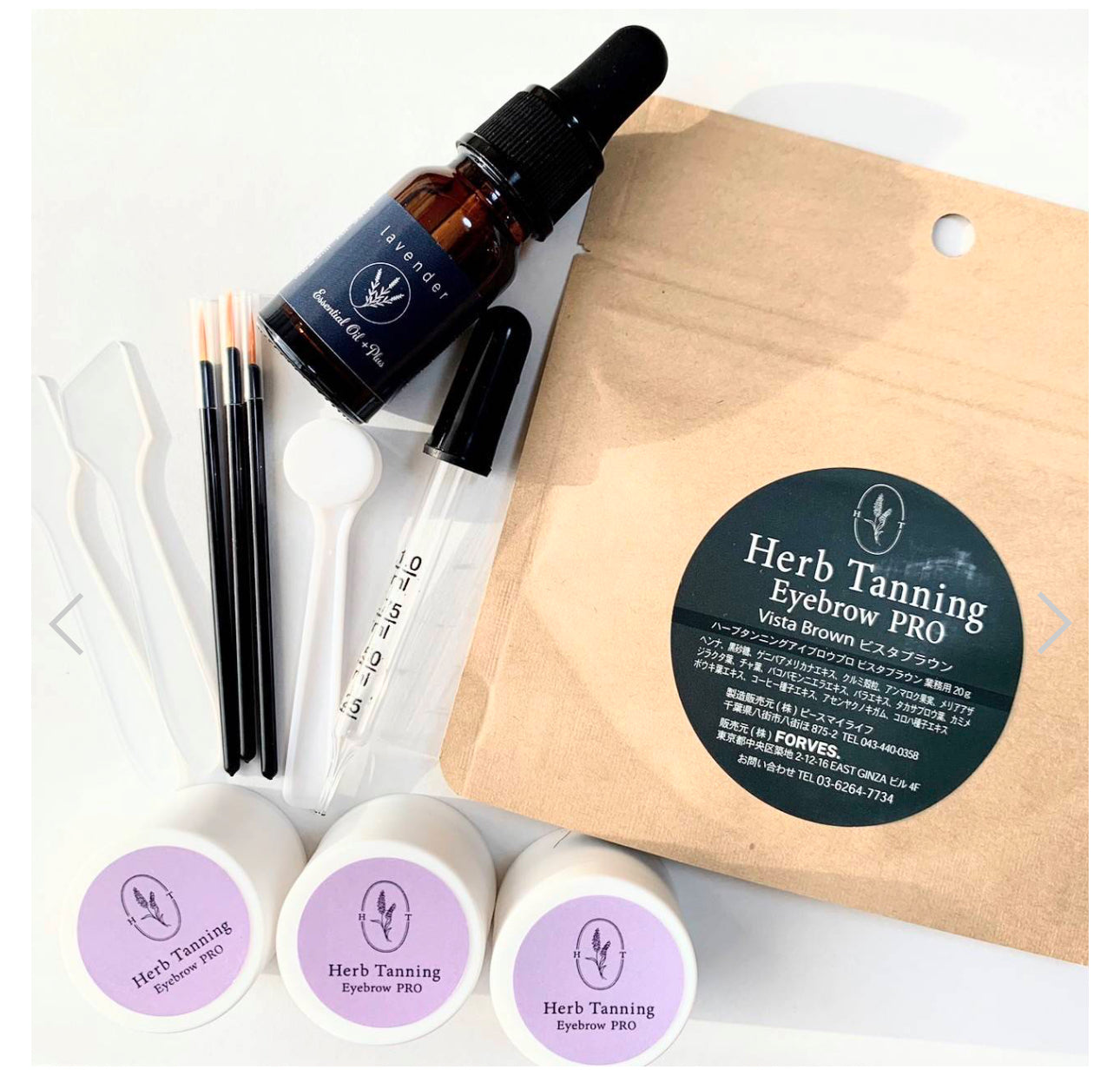 ◻️商品説明 ハーブタンニングアイブロウ PRO スターターセット ハーブタンニングアイブロウはハーブの力で眉の薄い部分をタンニング(染め)し、 メイクをサポートしながら、発毛環境を健やかに保つ眉染め商品です。 ※こちらは商材のみの購入となります 【ハーブタンニングアイブロウ導入キット内容】 ■0.5g入りケース(約2名分)×5ケース ※10名分 ■ラベンダーオイルplus 2ml ■スパチュラ 2点 ■塗布用ブラシ 5点 ■スポイト 1点 ■使用方法の簡易説明書 ■ステンシル ストレート5枚/アーチ5枚 〜〜オイルがリニューアル致しました!〜〜 ラベンダーエッセンシャルオイル+PLUS ハーブタンニングアイブロウ用 従来のオイルにユーカリを加えた新オイル 色の発色、定着、持続力が格段とアップしました! ハーブタンニング0.5gを水で溶いて常温に3時間放置後 1滴〜2滴を入れよく混ぜて使用します。 ※入れすぎてしまうと逆に剥離しやすくなるので入れすぎ注意です 内容量:2ml 施術可能人数:10人(目安) ※発色・定着・持続には個人差があります キットのみご購入で施術も可能ですが、 正しくお使いいただく為に オンラインセミナーも行っております。 受講者特典もございますのでぜひ、ご検討ください。 【導入前の質問】 Q1.美容師免許は必要ですか? ハーブタンニングはアイブロウスタイリングと同じようにメイクアップを目的とした施術です。現在アイブロウスタイリングをーメニュー化されているのであれば問題ないと考えていますが自治体により判断の違いがあることから各サロン様のご判断をお願いしております。 . Q2.ヘナでアレルギーがでると聞いたことがありますが大丈夫ですか? ハーブタンニングはハーブ100%の原料ですので、科学物質を使用した染料に比べるとアレルギーの可能性ははるかに低いです。ただし、植物アレルギーの方はご使用をお控えください。 . Q3.色味は1色のみの販売ですか?もっと暗い色が欲しいです。 第2弾(眉が生えているように見える黒寄りのダークブラウン)、第3弾(バーガンディーの様なお色味)のカラーバリエーションを展開していきます。 . Q4.眉ティントとの併用はカラー可能ですか? 可能です!ティントは酸性の染料の為、ハーブタンニングアイブロウとも相性がよく色味が落ちてきた際ティントを塗って形を補修してもらう事も出来ます。 . Q5.眉カラー(ブロウリフト)同日施術は可能ですか? カラーした直後のお肌はアルカリ性に傾いています。その為カラーやブロウリフトの施術直後のハーブタンニングは理想の染色になりません。カラー(ブロウリフト)後は1週間ぐらい開けて施術をされると良いです。また眉カラーでかなり明るめのブリーチをされている方は、ブリーチ毛にハーブの色味が入りトーンダウンするので、ブリーチ毛の方へのハーブはおすすめできません。 . Q.6.ハーブタンニングで染める放置時間は40分以上置いてはダメなのですか? 最低40分は放置して欲しいので、40分と記載しております。 しっかりと染めたい方、染めづらい方の場合は40分以上置いてもアレルギーが出るなどの心配はありません。 . Q.7.ワックス脱毛をした後の流れで施術は可能ですか? ワックス脱毛をして、赤くただれている状態でなければ可能です。ハーブタンニング アイブロウ プロは化学薬品を一切使用せず、商品に含まれる「メリアアザジラクタ葉エキス」(ニームともいいます)は肌荒れ抑制作用や抗炎症予防など皮膚を健やかに保つ効果もある成分を配合しております。 . Q8 ?使用できないクレンジングなどはありますか? ハーブタンニングした当日は、クレンジングしないようにお願いします。翌日以降については、オイルクレンジングすると落ちやすいので、オイルクレンジングを使用する場合は、眉毛付近はしないようにしてください。 . Q9 ハーブタンニングのペーストを作ってから、どのくらい時間が経つと冷蔵庫に入れたほうがよいですか? 16時間以上使用しない場合は冷蔵庫保管でお願いします。尚、冷蔵庫保管後に使用する際は施術の15分前に冷蔵庫から出してご使用してください。 . Q10 はじめオレンジに染まったのが落ち着きブラウンになるまで色味の調整でお帰りいただく際にパウダーなどでお化粧させて頂くことは可能ですか? アイブロウペンシルやリキッドアイブロウは出来るだけ避けてパウダーで仕上げる、又はティントでメイクをしてください。 . Q11青く発色してしまった場合はどうしたらよいですか? 眉毛の皮膚に化学物質が残留している方は青色(黒)に発色する事があります。(化学物質とは クレンジング・化粧品、眉毛パーマ・カラー剤などの残留物)ハーブタンニングアイブロウPROは100%ハーブで作られているのでお肌に残った化学物質をデトックスする作用があります。その為、2回目・3回目以降は本来の色味に染まっていきます。 ※ハーブタンニングをもっと詳しく知りたい方は、zoomにて有料セミナーもあります。 商品一覧よりご確認ください。